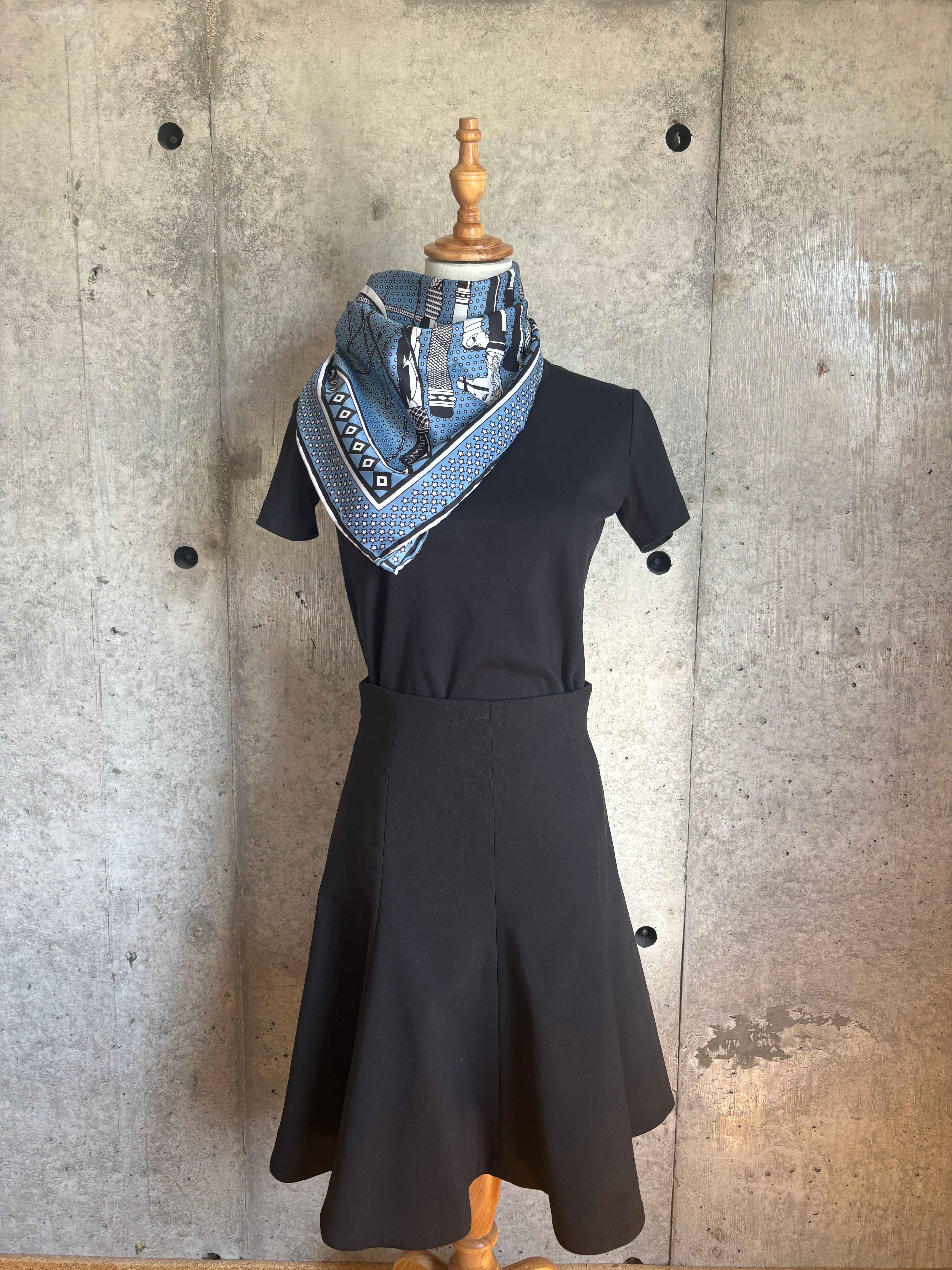 このスカーフは、爽やかな水色が特徴で、明るい印象を与えるアイテムです。軽やかな素材感が魅力で、どんなスタイルにもエレガントなアクセントを加えます!