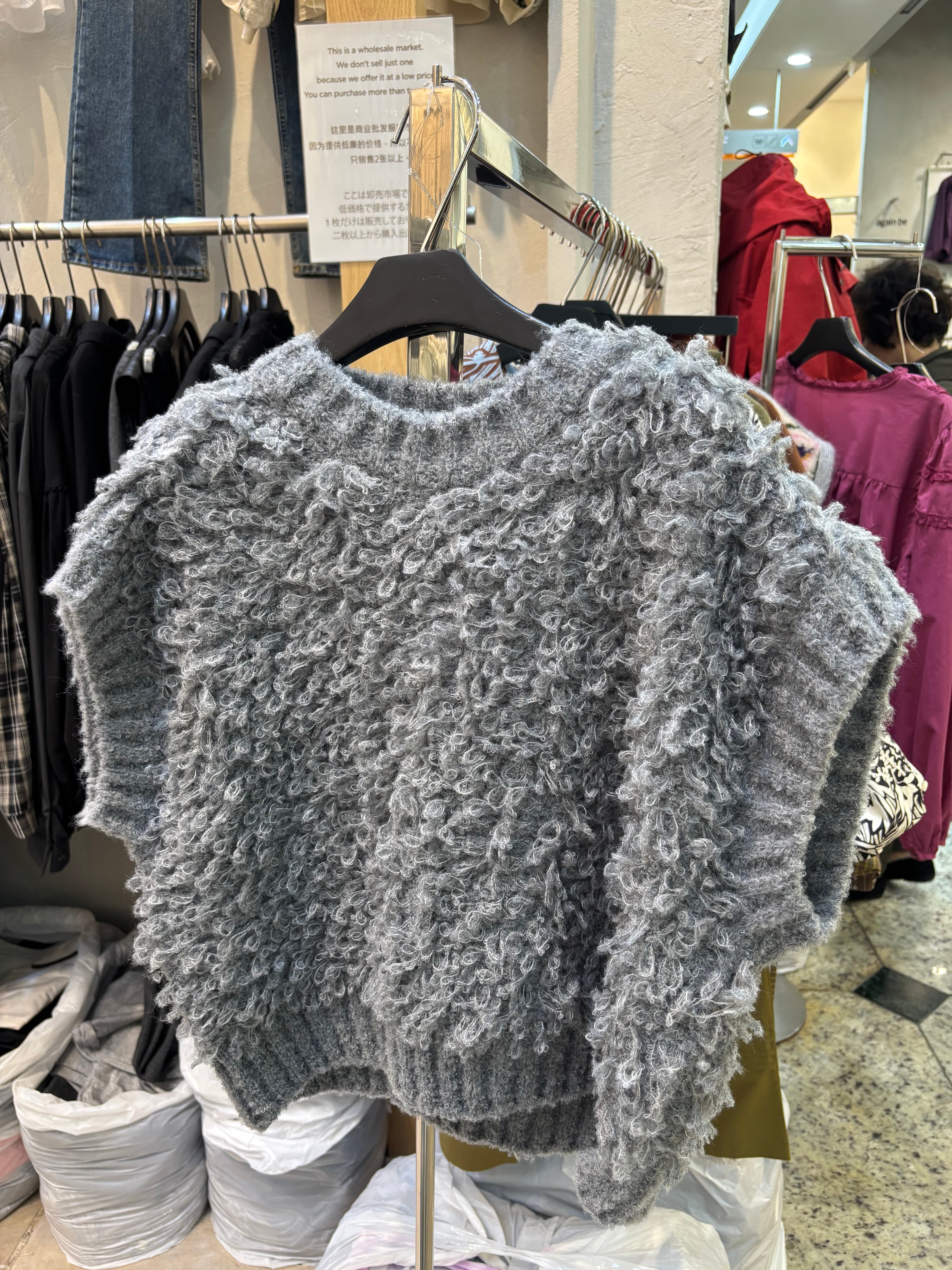 このモコモコニットベストは、優しいグレーの色合いが特徴で、どんなスタイルにもアクセントを加える柔らかなアイテムです。ふんわりとした素材を使用しており、温かみのある着心地を実現します!